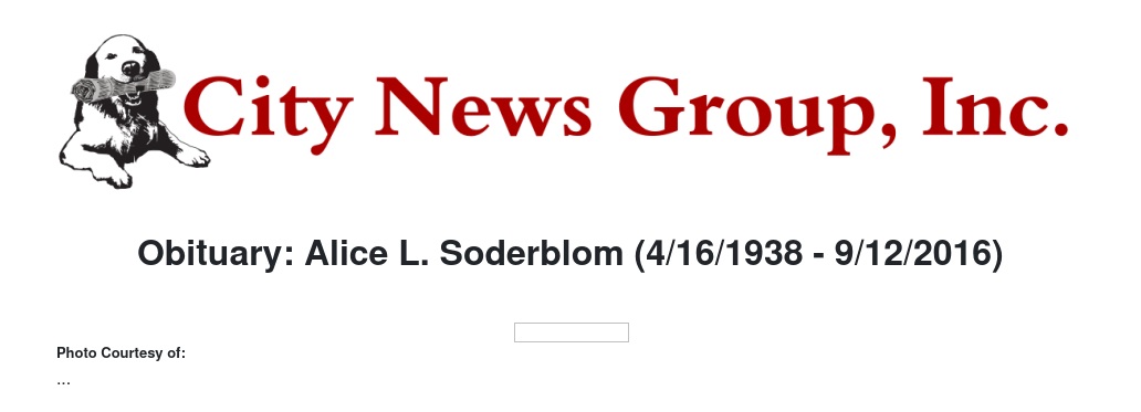 Obituary: Alice L. Soderblom (4/16/1938 - 9/12/2016)