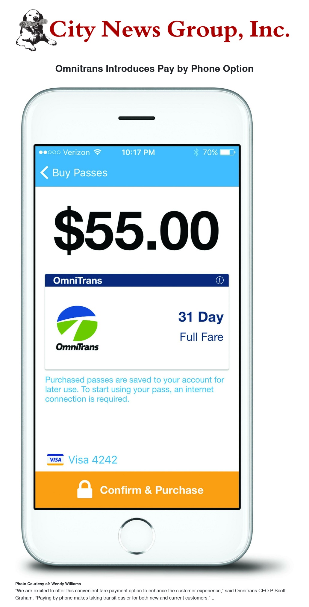 “We are excited to offer this convenient fare payment option to enhance the customer experience,” said Omnitrans CEO P Scott Graham. “Paying by phone makes taking transit easier for both new and current customers.”