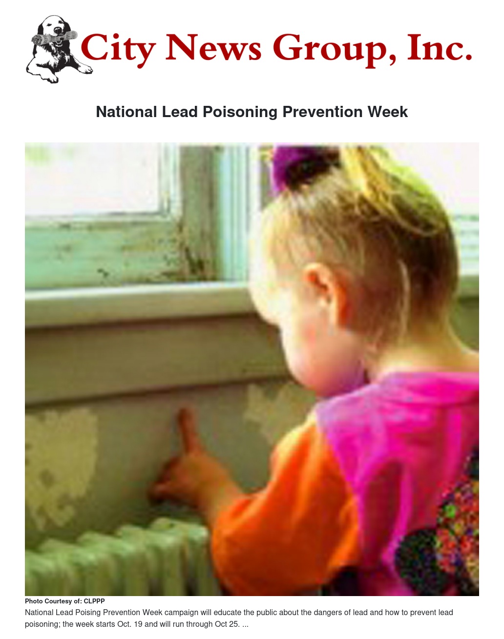 The County of San Bernardino Department of Public Health announced plans to commemorate National Lead Poisoning Prevention Week, Oct. 19-25, with a week-long information campaign about childhood lead poisoning.