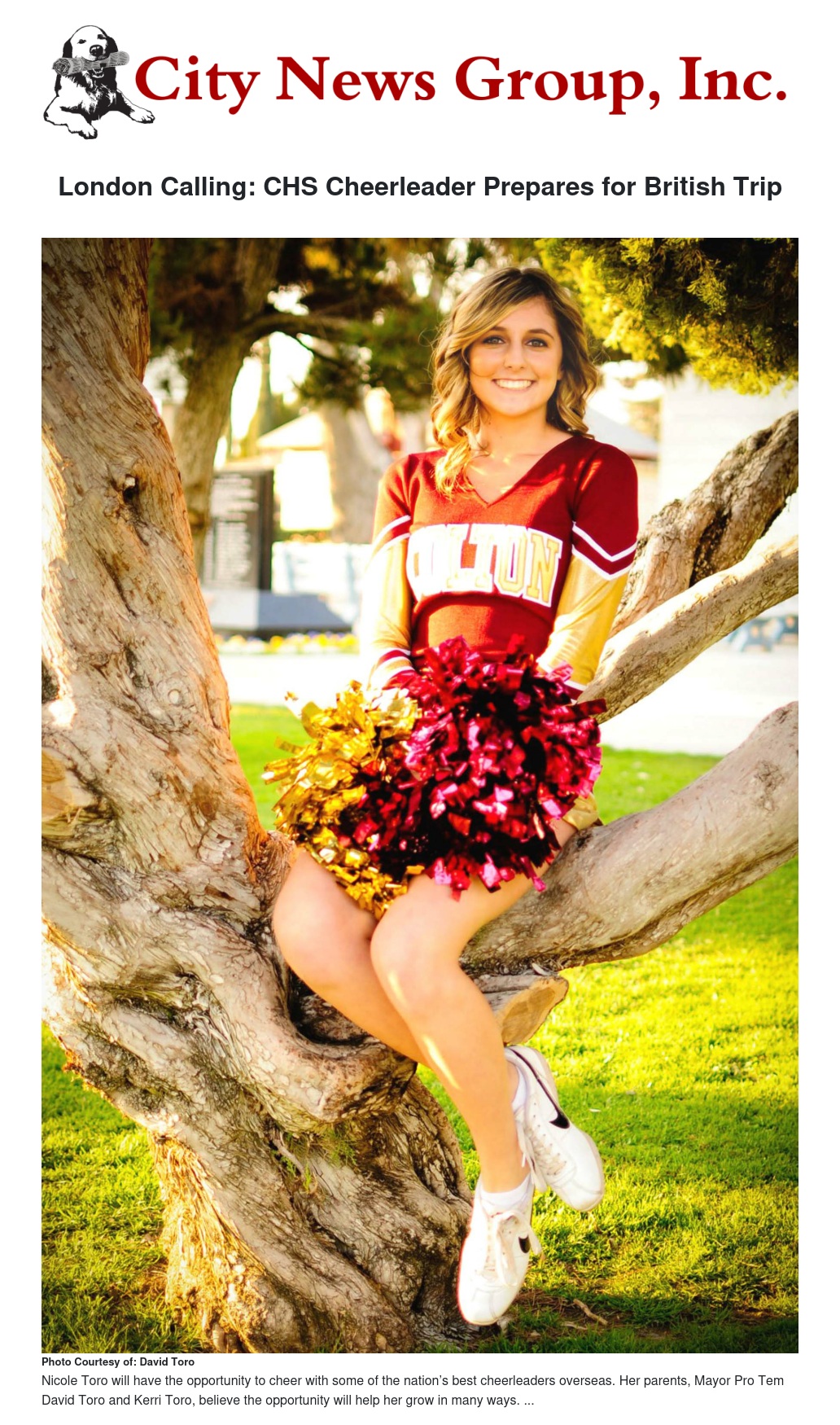 Colton High School (CHS) cheerleader Nicole Toro has raised the initial $800 she needed to secure her spot on the All-American cheer squad, and will travel at the end of this year to London, England and participate in London’s New Year’s Day Parade on Jan. 1, 2014.