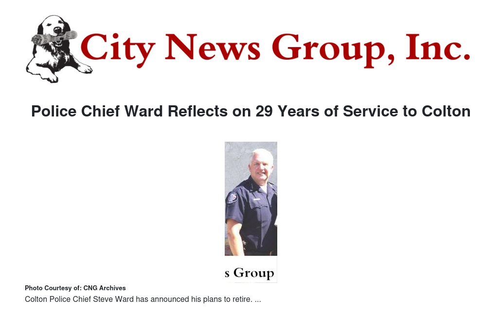 With plans to step down as police chief on March 8, Ward reflected upon his law enforcement career and his service to the city of Colton.