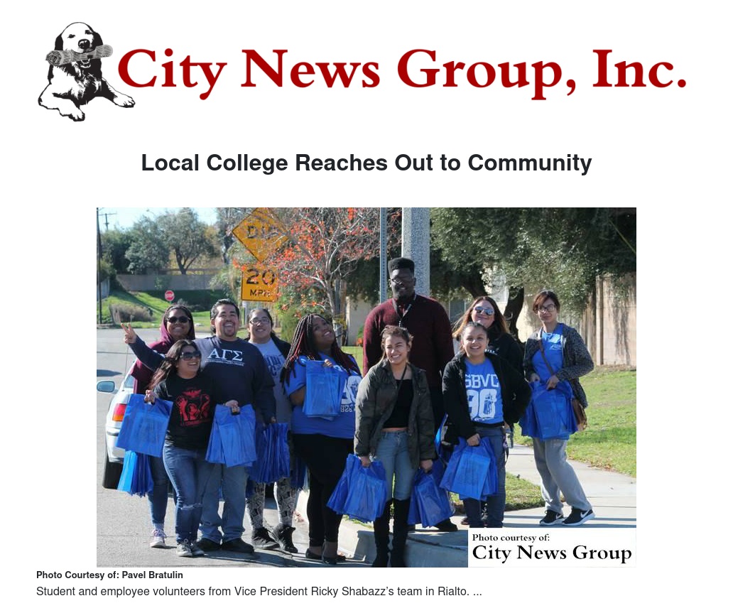 San Bernardino>> Between 10:00 a.m. and noon, more than 100 volunteers, including students, faculty, staff and administrators from the college, canvased neighborhoods in San Bernardino, Colton, Rialto and Highland to distribute schedules and information about spring enrollment during the San Bernardino Valley College’s first-ever Day of Service event.