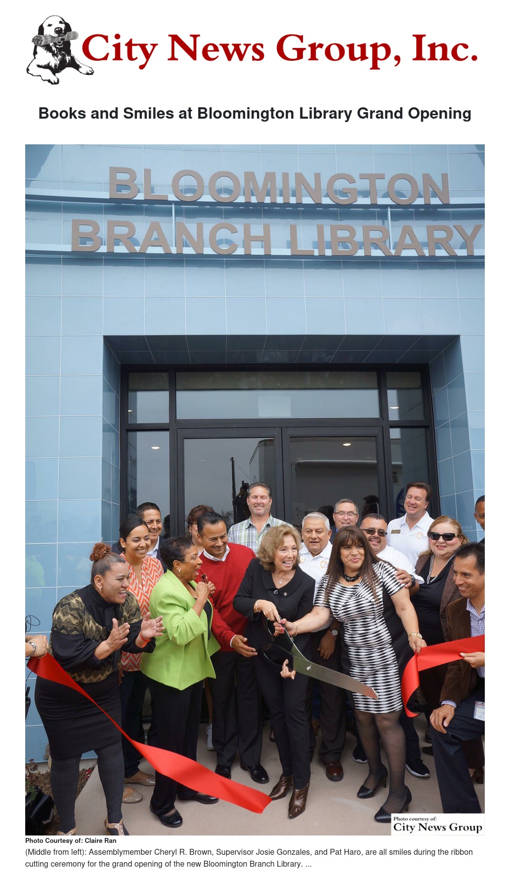 BLOOMINGTON >> The grand opening celebration for the new Bloomington Branch Library successfully took place on Saturday, May 14. The new library is part of a multi-generational community of Bloomington Grove affordable housing apartments and Lillian Court senior community.