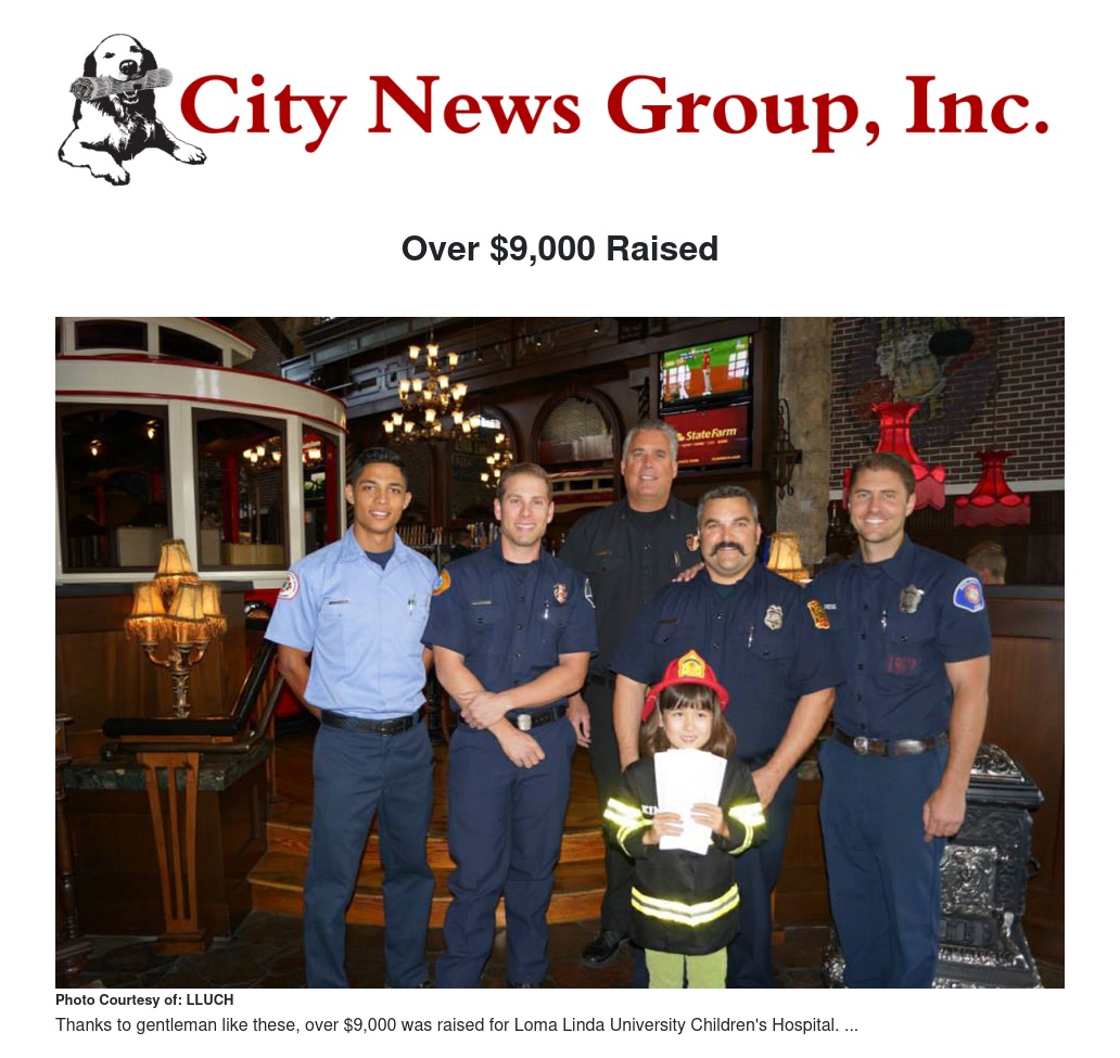The Old Spaghetti Factory (OSF) in Redlands and Rancho Mirade hosted Tip-A-Firefighter in April, raising over $9,000 for Loma Linda University Children’s Hospital (LLUCH).