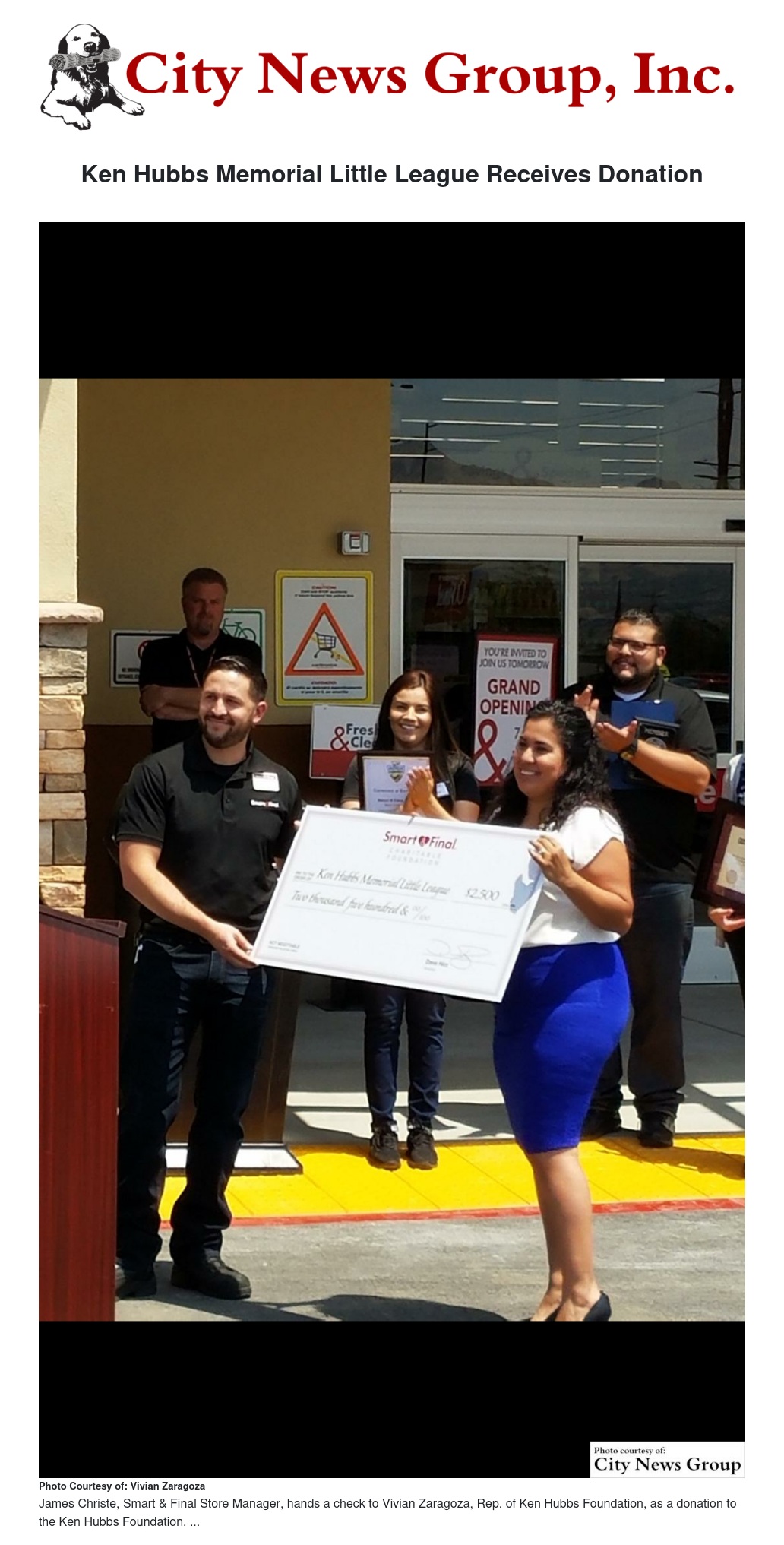 Ken Hubbs Memorial Little League expressed their gratitude to Smart & Final. “Smart & Final coming into our city is a blessing. We weren’t expecting that much and that donation just lifted our spirits. William Pena, Smart & Final Regional Growth Rep., is an amazing person. So are all the people who work for the city.”