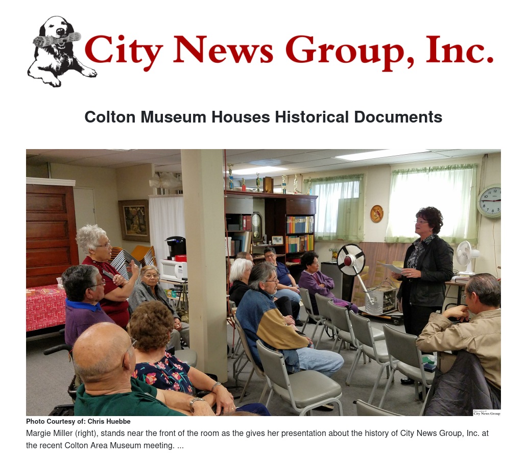 Members of the Colton Museum and Historical Society gathered on Saturday, March 11, for a speech on the history of City News Group, Inc.