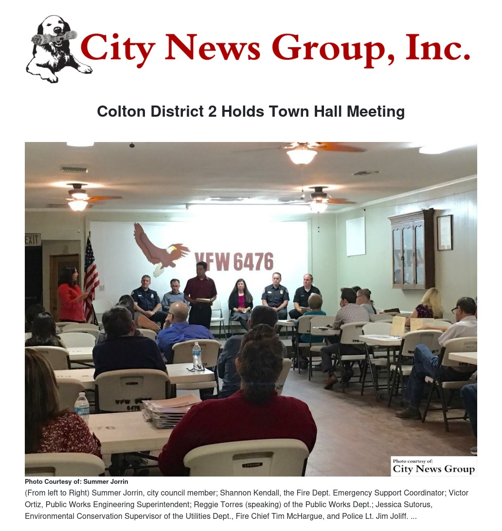 COLTON>> In March, Colton District 2 held a town hall meeting at the VFW Post 6476.