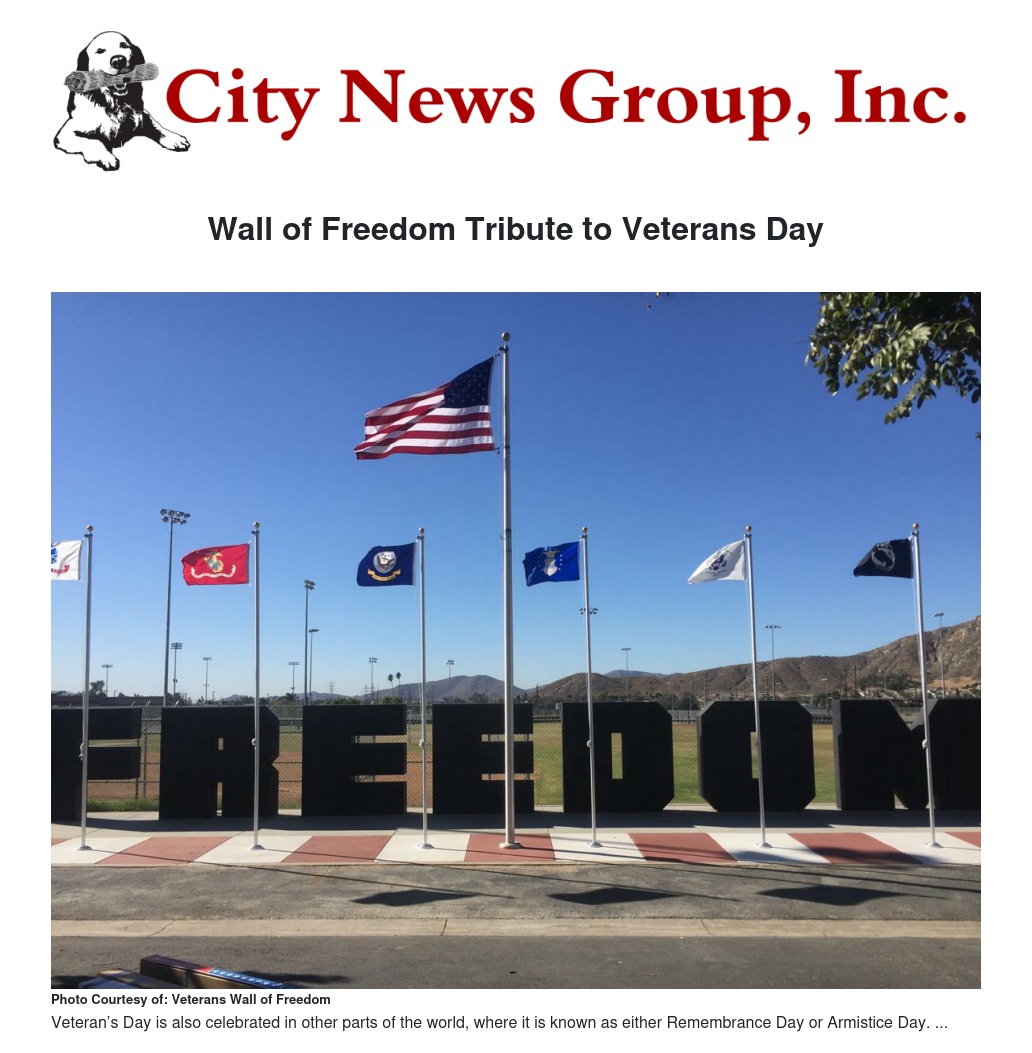 For people in the US, Veterans’ Day is a time to hoist the American flag to show gratitude to the war veterans who were willing to sacrifice their lives for the well-being of the nation. It is a federal holiday as well as a state holiday in all the states of the USA. Military veterans have selflessly made great sacrifices to maintain peace within the country and abroad, and they should be given due honor for their heroic deeds. This Veterans’ Day the Grand Terrace Wall of Freedom committee will be celebrating those who served with a program at Freedom Park (old Pico Park) in the City of Grand Terrace at 11:00 p.m. The six foot high FREEDOM wall will be the center piece of the ceremony. Please come and enjoy the festivities that celebrate those who have served their country in the military.