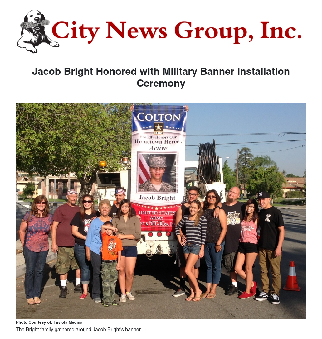 Bright is one of the youngest men that have been honored with a military banner in Colton.