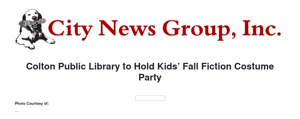 Colton Public Library to Hold Kids’ Fall Fiction Costume Party