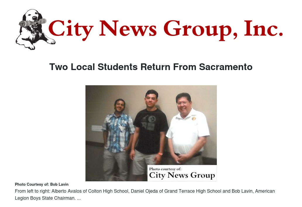COLTON>> Alberto Avalos from Colton High School and Daniel Ojeda from Grand Terrace High School represented the Colton American Legion Post 155 at the 2016 American Legion Boys State Conference.