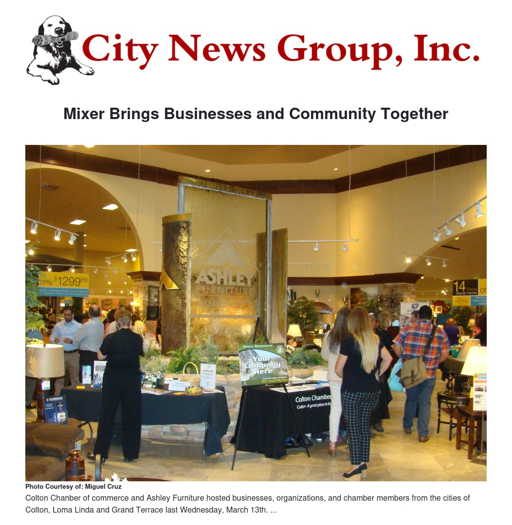 The Colton, Grand Terrace, and Loma Linda chambers of commerce, along with Ashley Furniture Home Store recently hosted businesses, organizations, and chamber members for a night of networking, food, and raffle prizes.