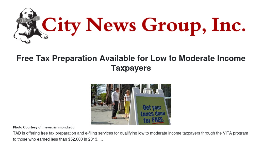 Free Tax Preparation Available for Low to Moderate Income Taxpayers