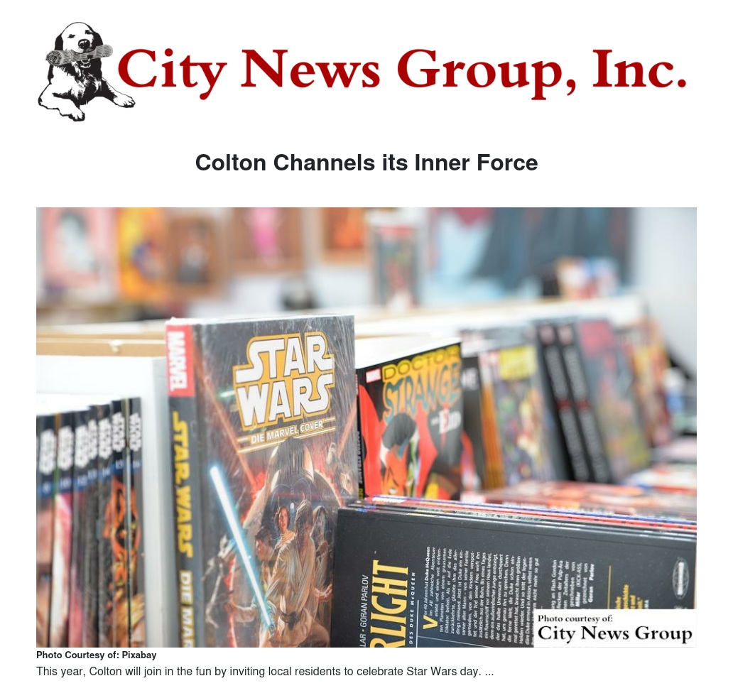 This year, Colton will join in the fun by inviting local residents to celebrate Star Wars day.