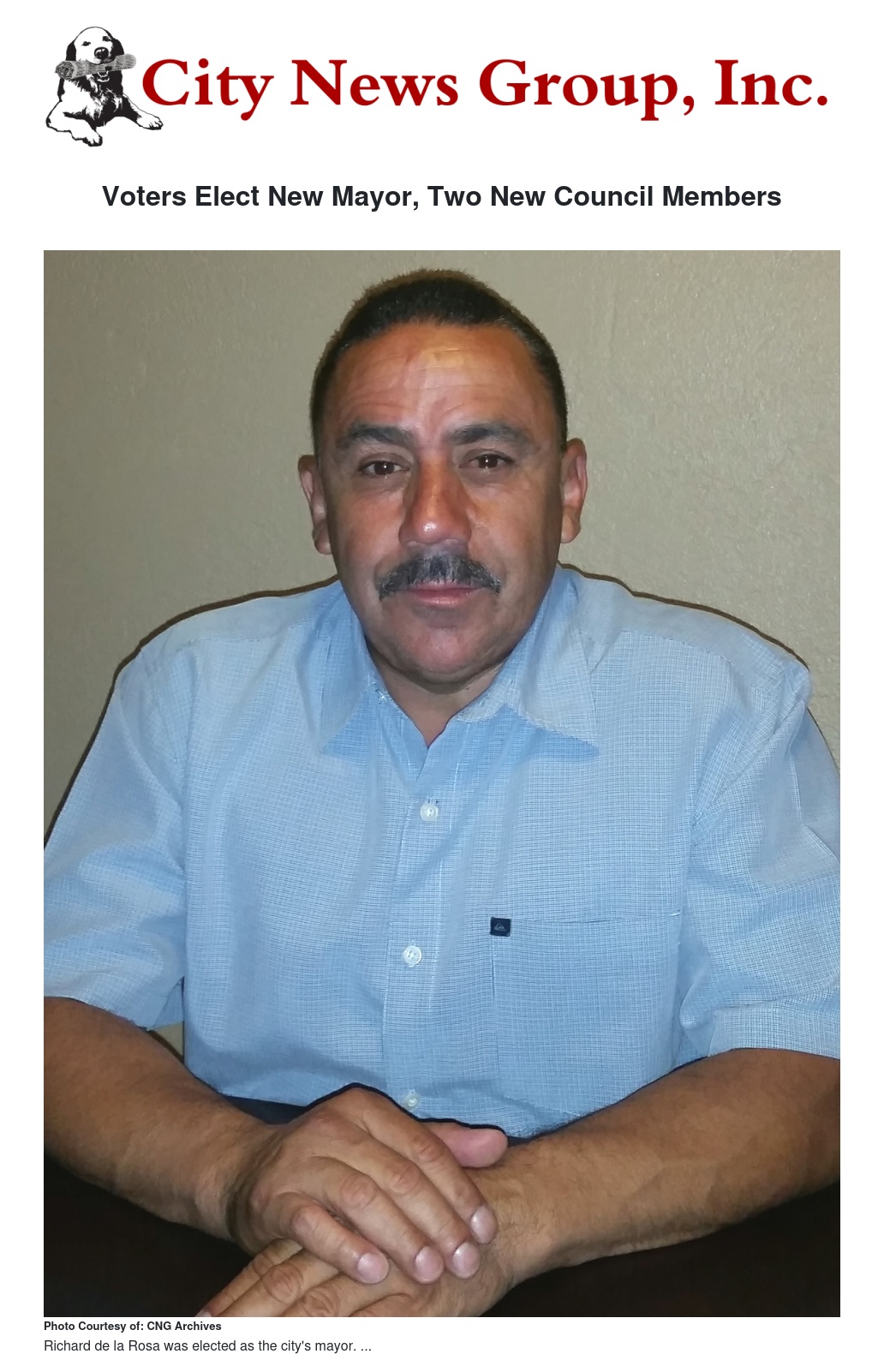The San Bernardino County Registrar of Voters poll results as of Monday, Nov. 10, name Richard De La Rosa as Colton's mayor with all precincts reporting, garnering 61.99 percent of the vote against his opponent, District 2 Councilmember Frank Gonzales, who received 38.01 percent of the vote.