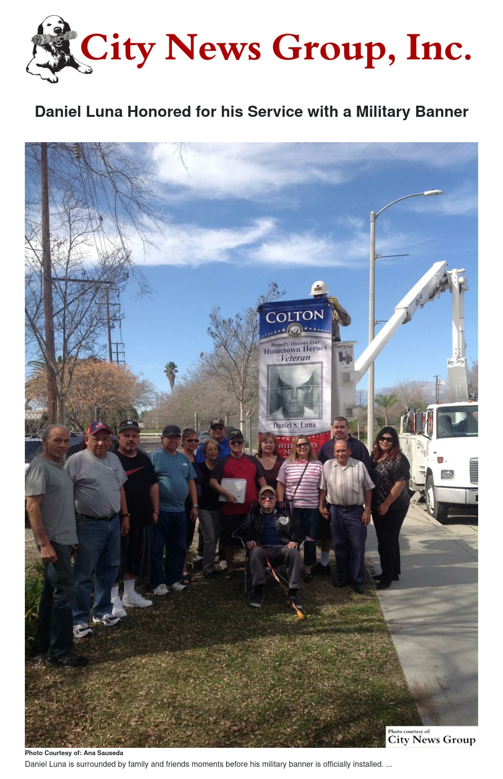 COLTON >> Coltonite Daniel Luna received his very own military banner, officially installed on the first pole west of 7th Street in his hometown of Colton, on Feb. 10.