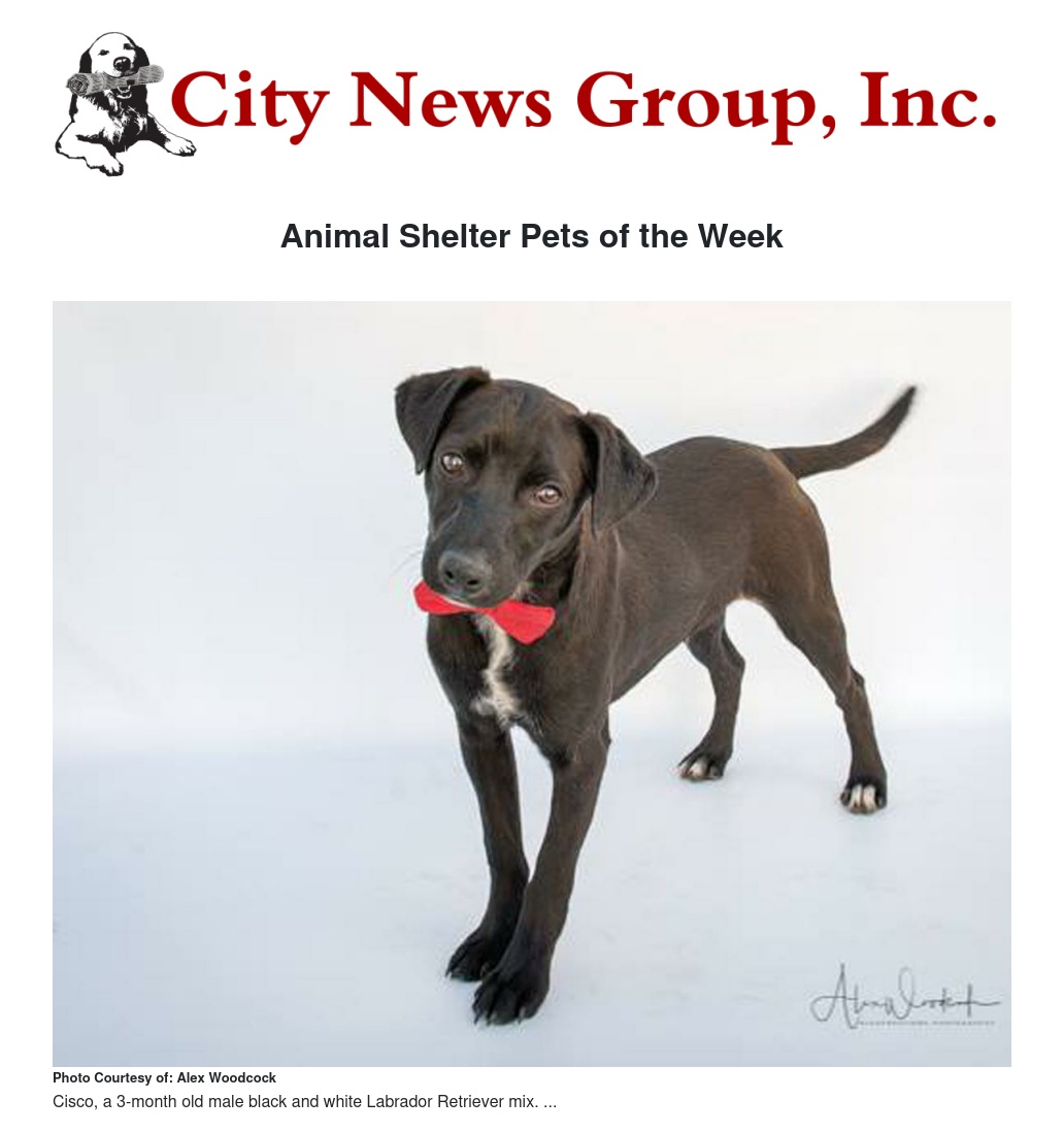- “Cisco,” a 3-month old male black and white Labrador Retriever mix. Cisco has been at the Redlands Animal Shelter since February 15, 2018. He is very friendly and loving with a winning personality. Who doesn’t love a puppy!