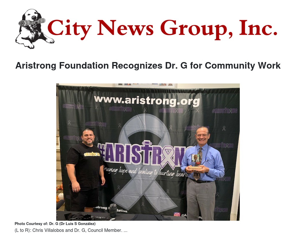 For more information about the Aristrong Foundation, please check out our website @ Aristrong.org or contact us at 909-213-2863. For more information about CITY TALK with Dr. G, please contact Dr. G at 909-213-3730.