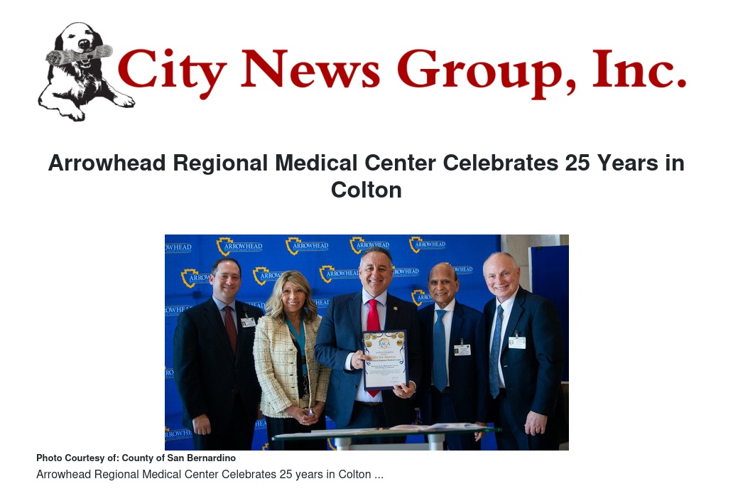 Arrowhead Regional Medical Center Celebrates 25 Years in Colton by Cameron Lindsey - City News Group, Inc.