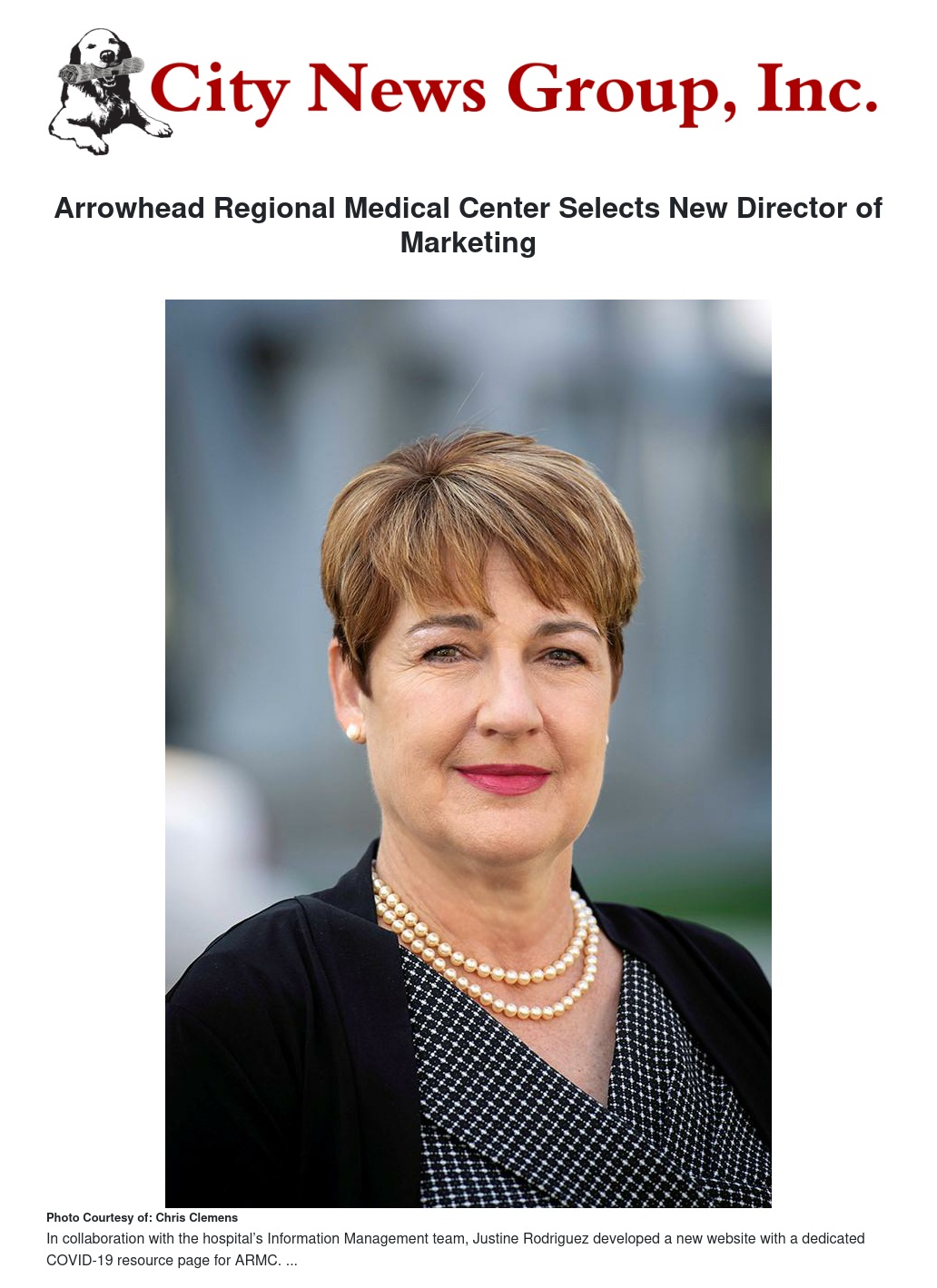Arrowhead Regional Medical Center (ARMC) is pleased to promote Justine Rodriguez, APR, MH, to Director of Marketing and Public Relations, effective August 1. Rodriguez served as the Interim Marketing and Public Relations Director since February 2020. She will continue to strategize the medical center’s overall communications both internally and externally, while being responsible for developing marketing materials; managing public relations; serving as the hospital’s public information officer; overseeing digital marketing administration; facilitating physician and hospital staff relations; and proactively interfacing with community groups, government agencies, and elected officials.