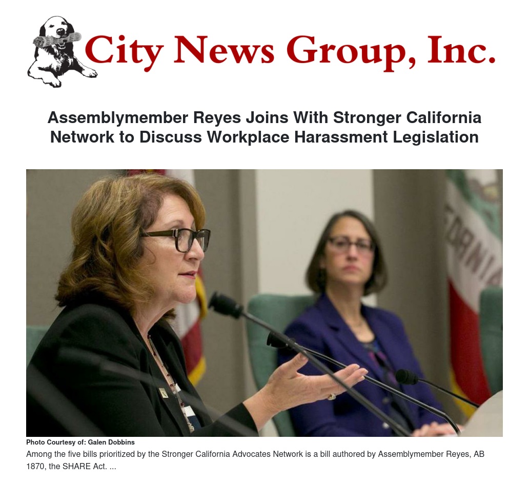 Among the five bills prioritized by the Stronger California Advocates Network is a bill authored by Assemblymember Reyes, AB 1870, the SHARE Act, which would extend the statute of limitations on reporting harassment in the workplace, or related to housing discrimination from one year to three years. Applying to all harassment claims (Gender, Race, Religion, Disability, etc) AB 1870 seeks to address multiple forms of harassment that can occur in the workplace including sexual harassment.