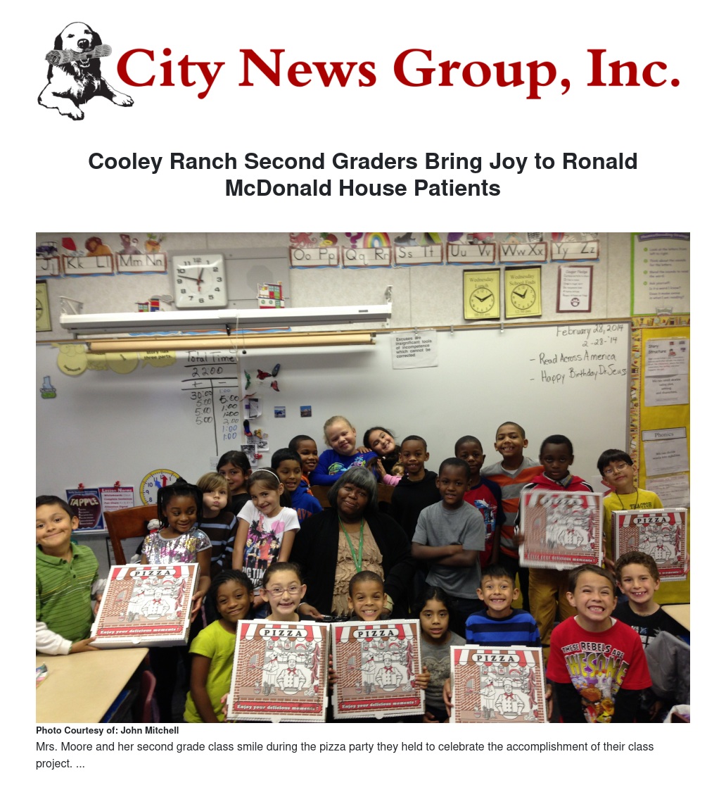 Cooley Ranch Second Graders Bring Joy to Ronald McDonald House Patients