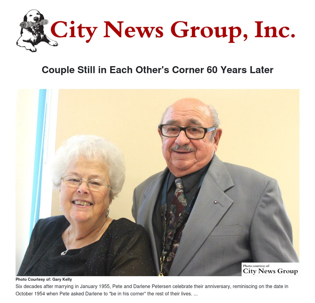 He met and fell in love with Darlene Anderson, a base employee and Chapel organist. On a date in October 1954, Petersen hung his hard-earned golden gloves around Anderson's neck and asked her to be in his corner the rest of their lives.