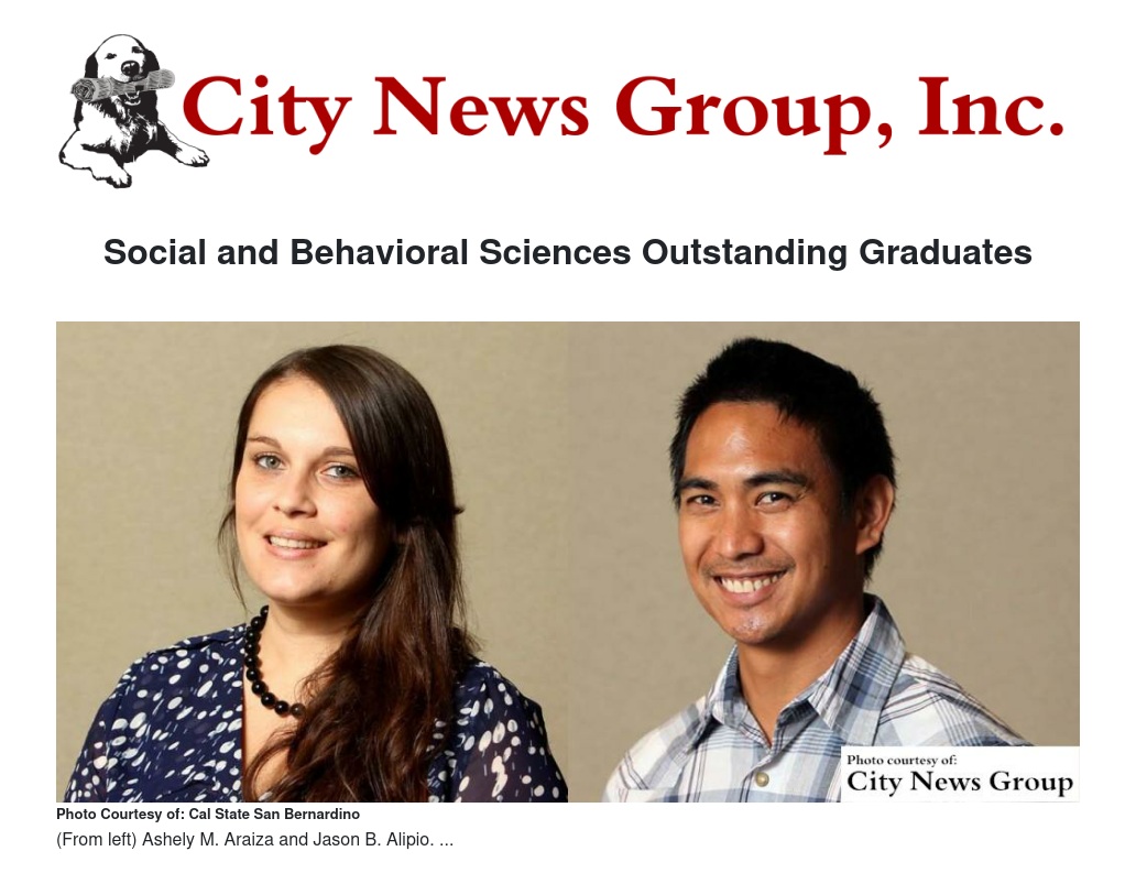 SAN BERNARDINO >> The psychology department was well represented when Ashely M. Araiza, Outstanding Graduate Student, and Jason B. Alipio, Outstanding Undergraduate Student, were honored during Cal State San Bernardino’s College of Social and Behavioral Sciences’ 2016 Commencement.