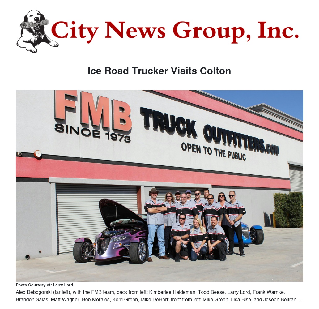 Last Thursday’s fundraiser and Friday’s 40th Anniversary celebration seemed like the perfect time to invite the Ice Road Trucker to Lord’s stomping ground. Without hesitation, Debogorski accepted the invitation. “He’s just a good guy,” Lord said. Following the celebration, Debogorski and FMB Truck Outfitters staff all joined together after hours for a celebratory dinner in Ontario, Calif.