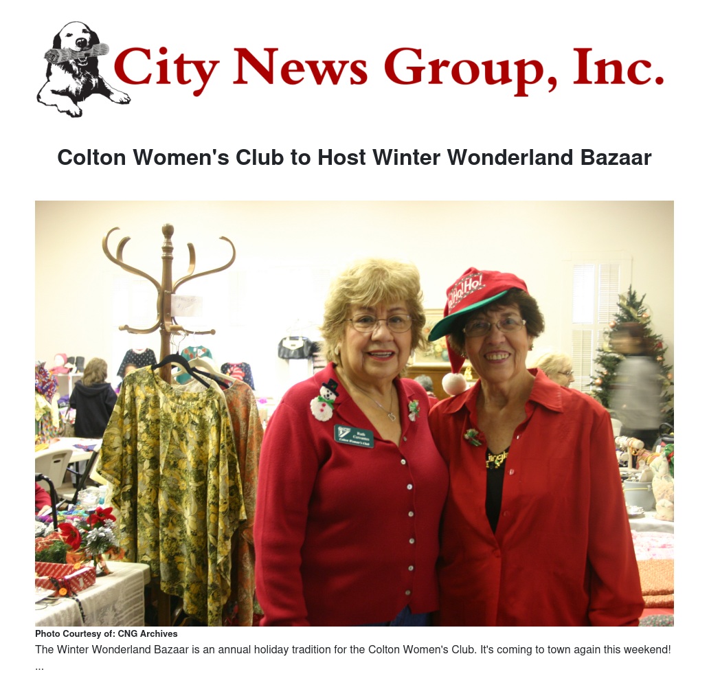 Colton Women's Club to Host Winter Wonderland Bazaar