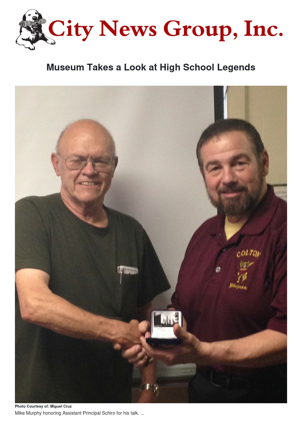 The talk, “Colton Union High School: Fabulous Fairy Tales, Folktales, Fables and Folklore” was given by guest speaker Victor R. Schiro, who is the assistant principal of CHS, formerly known as Colton Union High School, and has been with the school since 1994.