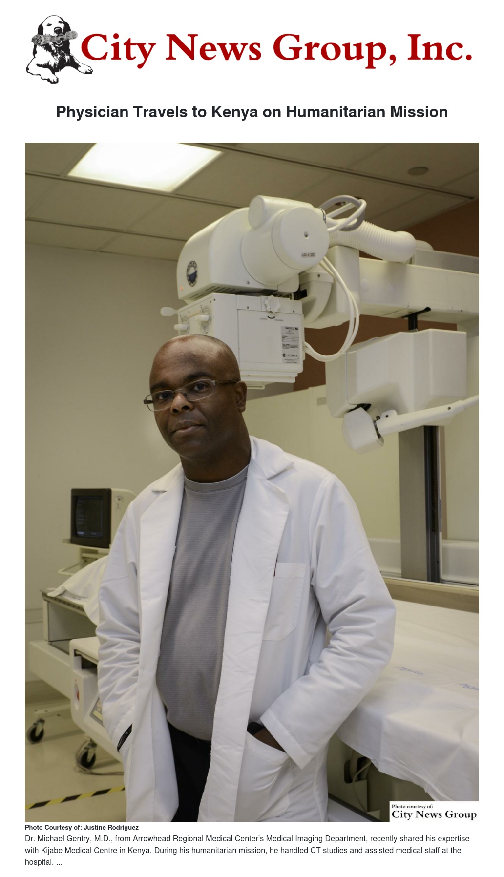 COLTON>> AIC Kijabe Medical Center in Kenya welcomed a new physician this summer, Dr. Michael Gentry, M.D., from Arrowhead Regional Medical Center’s Medical Imaging Department.
