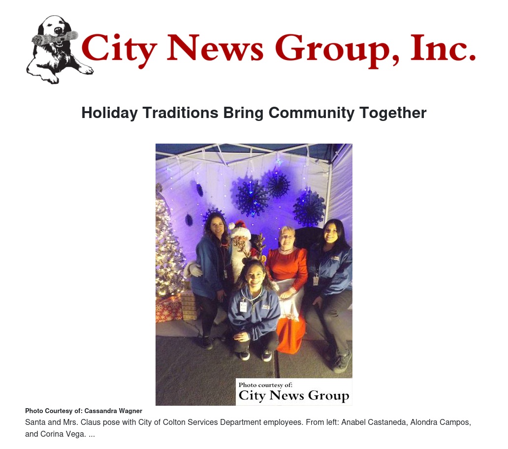 It is the beginning of the holiday season, and with it many communities are coming together to celebrate unique traditions. The residents in the city of Colton gathered together on Dec. 7 in front of City Hall to kick start the season with their annual tree lighting ceremony. The event began at 5:30 p.m. and was free to the public. Residents counted down the tree’s lighting with Mayor Richard DeLaRosa.