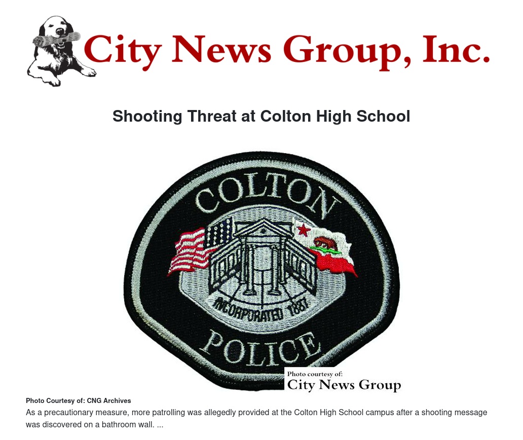 The threat was brought to the attention of Colton Police, who patrolled the school throughout the entire week.