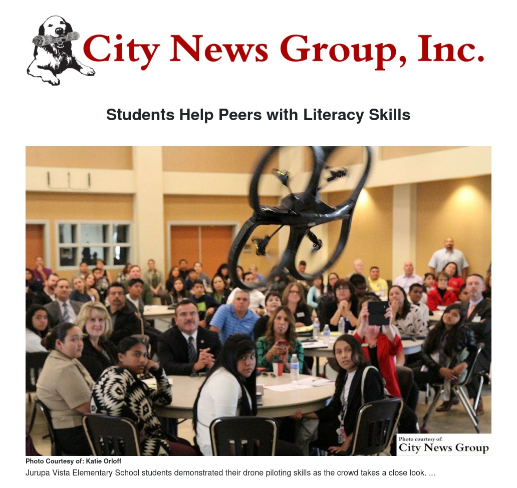 The audience then had a chance to see what students are learning as two Jurupa Vista Elementary School students (led by their Principal, Dr. Natasha Jones) demonstrated their drone piloting skills, which they learned at the Girl Scouts’ GenCyber Day Camp held at California State University, San Bernardino last summer. Superintendent Jerry Almendarez asked one of the young ladies how she learned to fly the drone, to which she replied: “First it was hard, then I advanced, then I could fly!”