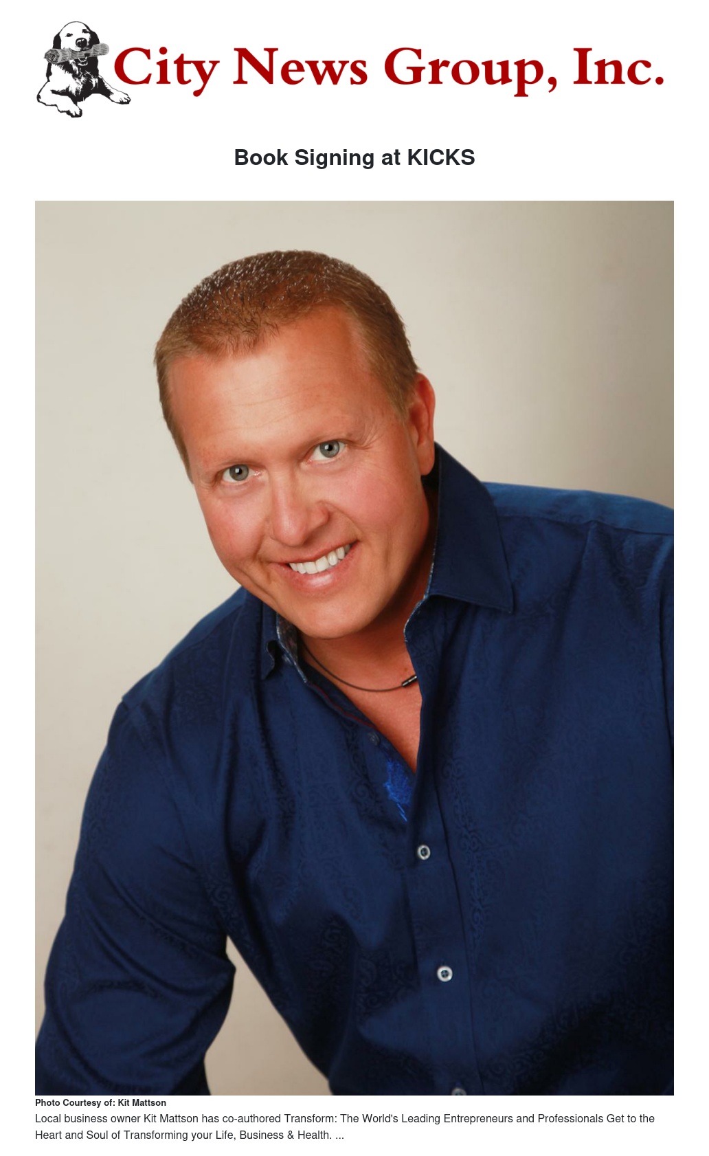 Kit Mattson has joined noted business development expert, best-selling author and speaker, Brian Tracy, along with a select group of the world’s leading experts, to co-write the forthcoming book titled, Transform: The World’s Leading Entrepreneurs and Professionals Get to the Heart and Soul of Transforming your Life, Business & Health.