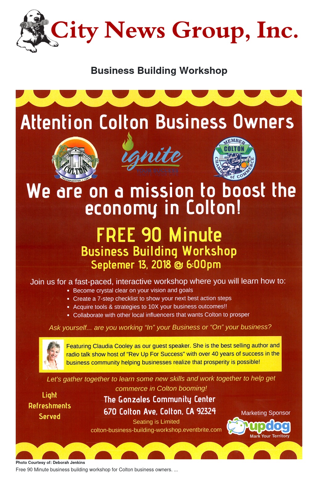Light refreshments will be served. Seating is limited, so reserve your seat early by registering at www.colton-business-building-workshop.eventbrite.com