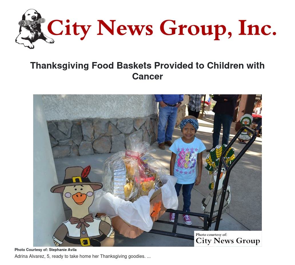 Thanksgiving Food Baskets Provided to Children with Cancer