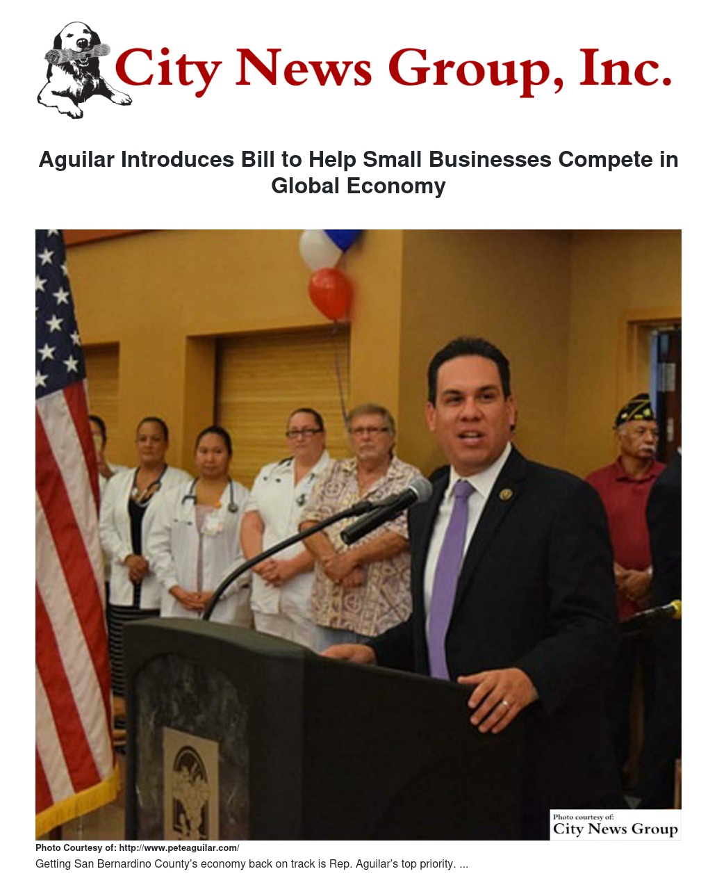 Aguilar Introduces Bill to Help Small Businesses Compete in Global Economy