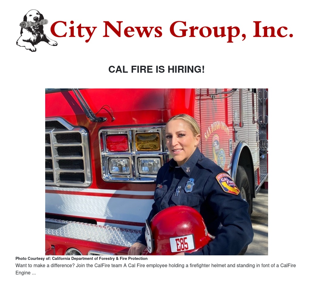 CAL FIRE IS HIRING! by Stella Pierce - City News Group, Inc.