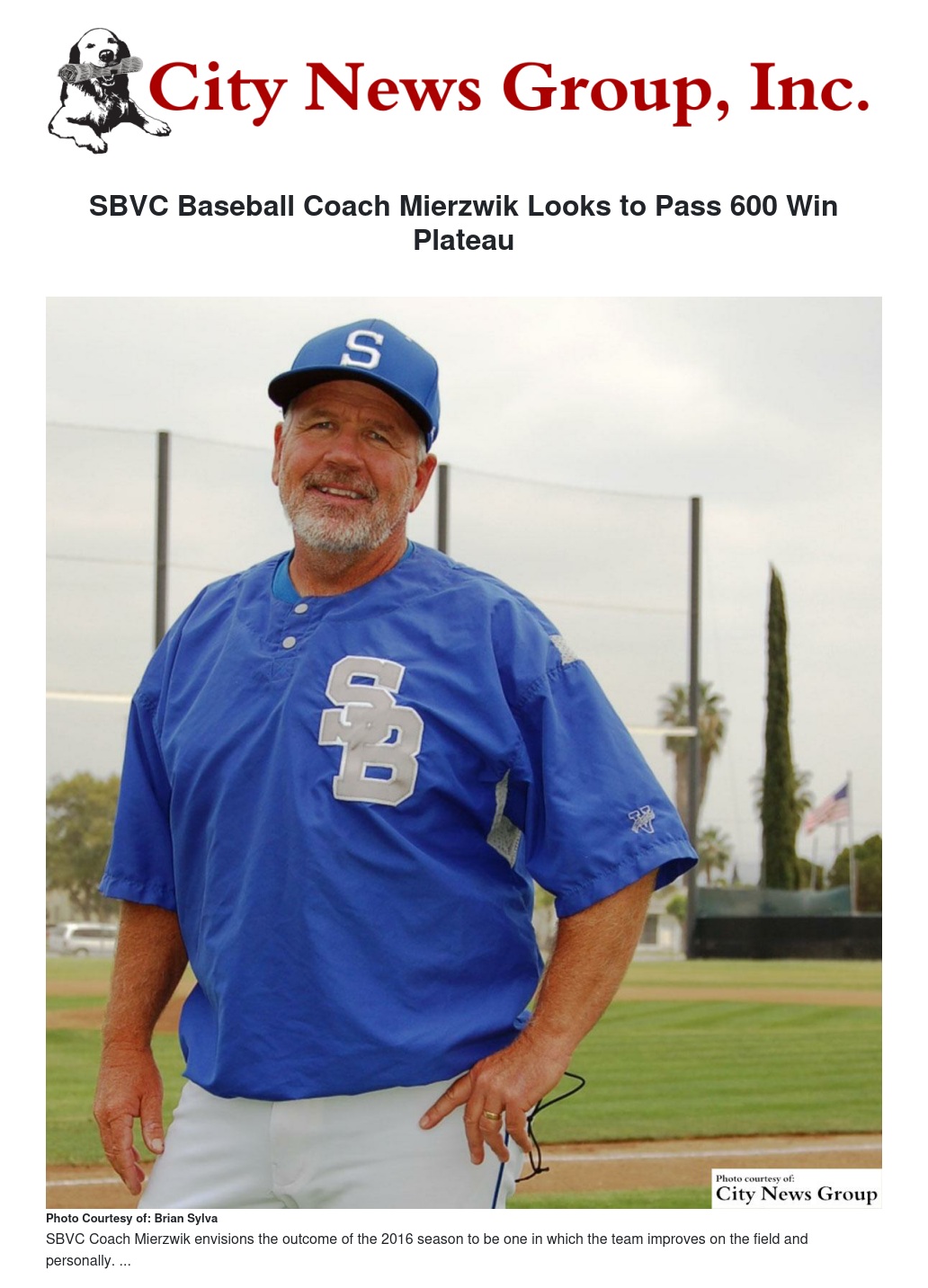 SBVC Baseball Coach Mierzwik Looks to Pass 600 Win Plateau