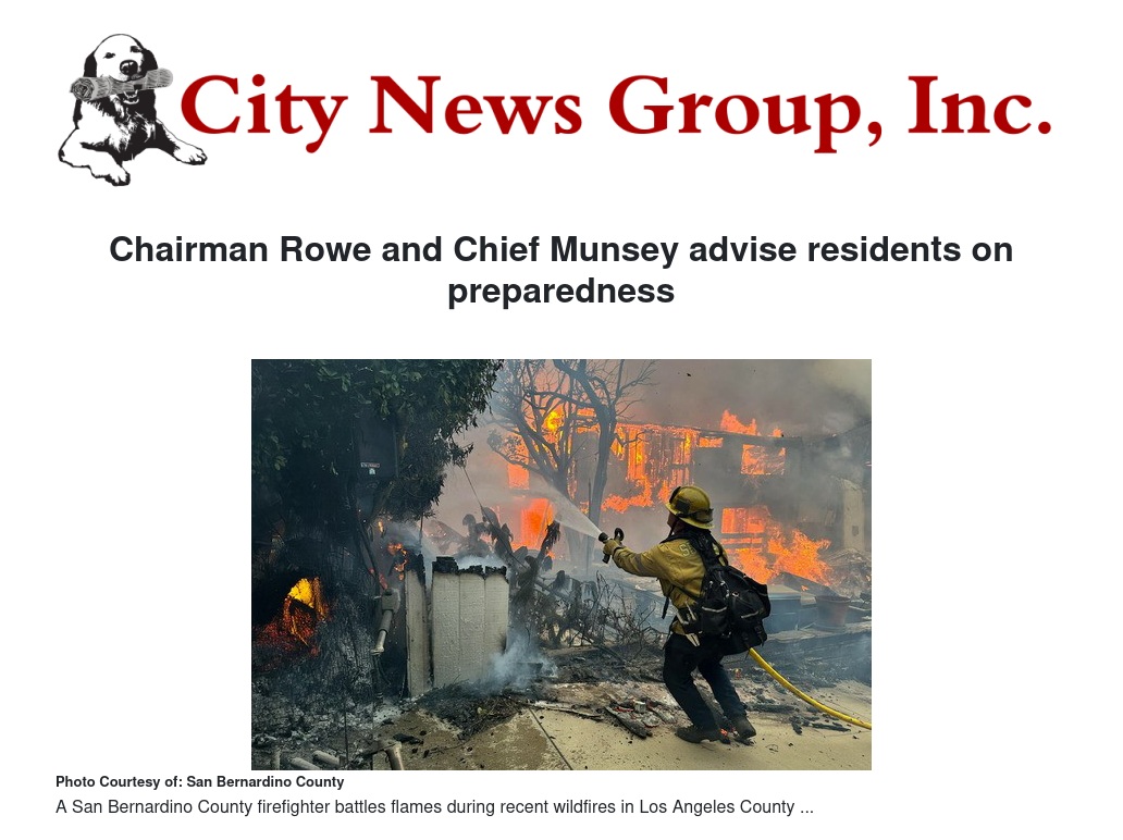 Board of Supervisors Chairman Dawn Rowe and County Fire Chief Dan Munsey had a conversation on Tuesday about San Bernardino County’s state of preparedness, concerns being raised by county residents in light of the Los Angeles fires, and what county residents can and should do to prepare.