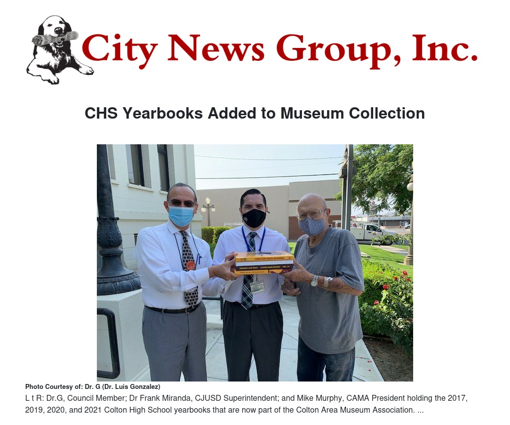 "We are lucky to have a resource like Colton Area Museum to spread awareness of our community's history and preserve artifacts like these yearbooks, for the public's education and enjoyment," said Colton Joint Unified School District Superintendent Dr. Frank Miranda.