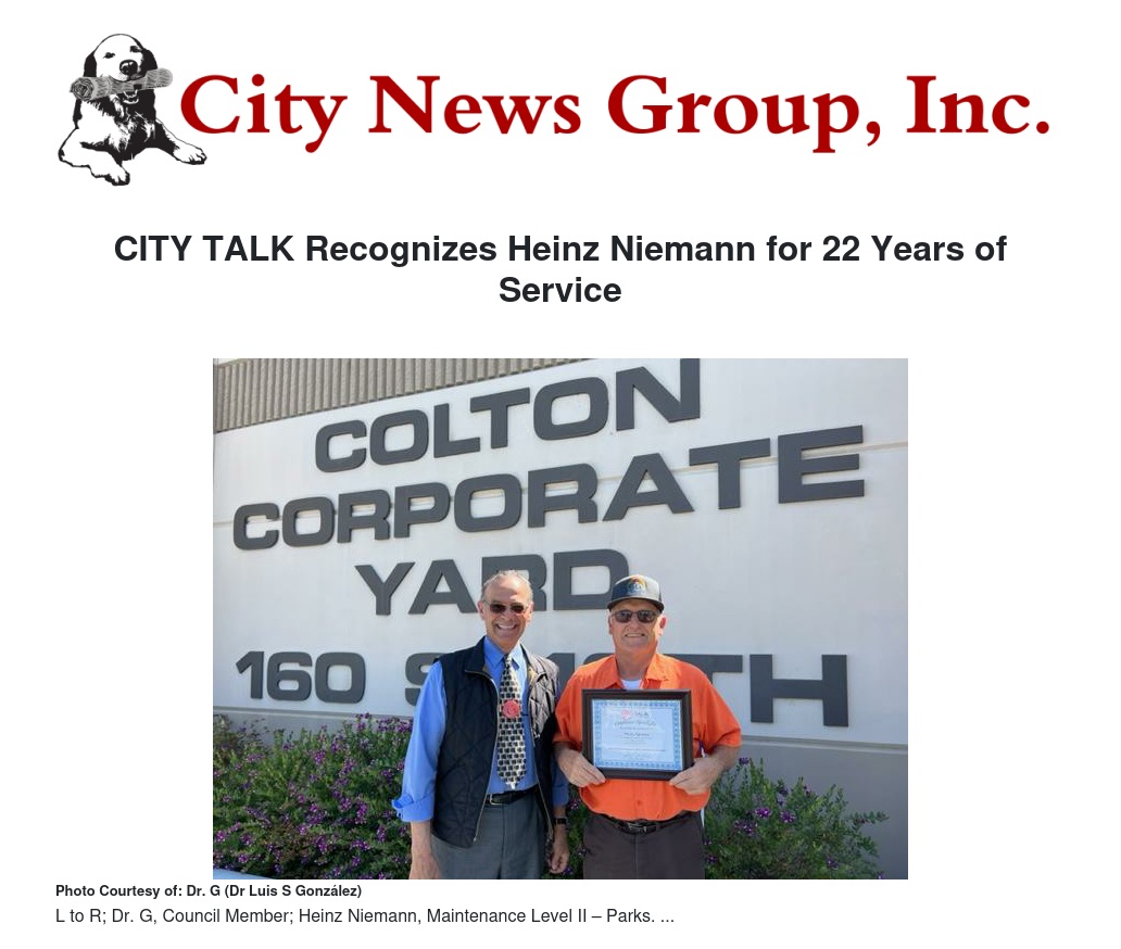 We are certainly proud to recognize all our employees in the City of Colton. However, time and opportunity are limited, so an “Employee Spotlight” allows us to recognize the individual efforts of employees who really stand out for their dedication, hard work, and long-standing service to our various departments, and the community.” The CITY TALK “Employee Spotlight” recognition award was established in 2020 to recognize these great efforts.