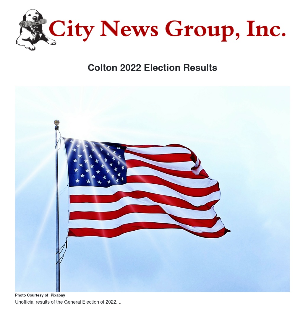 The unofficial Colton 2022 results have been updated every day since Voting Day, November 8, 2022.