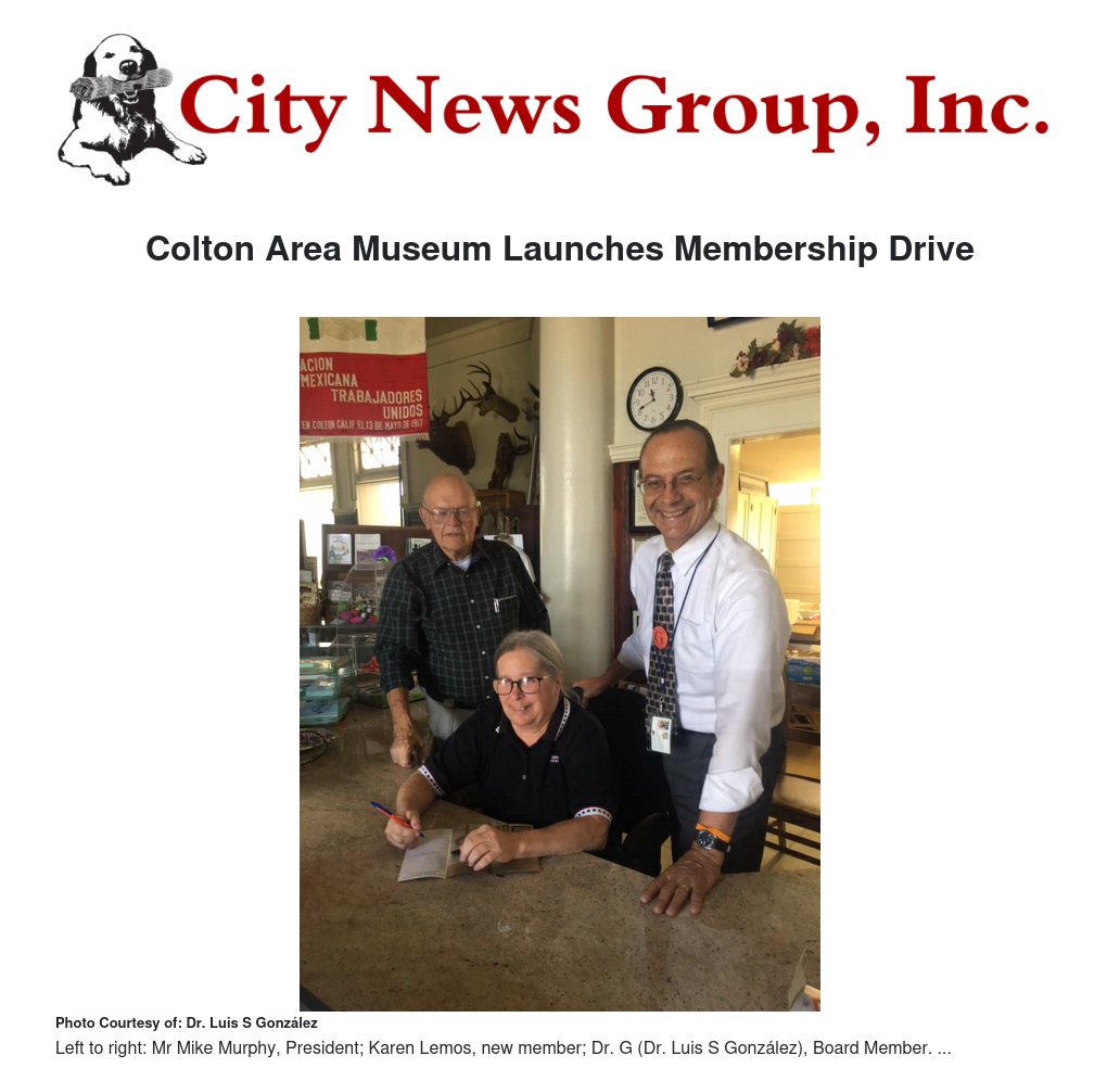 Colton Area Museum Launches Membership Drive by Dr. Luis S González - City News Group, Inc.