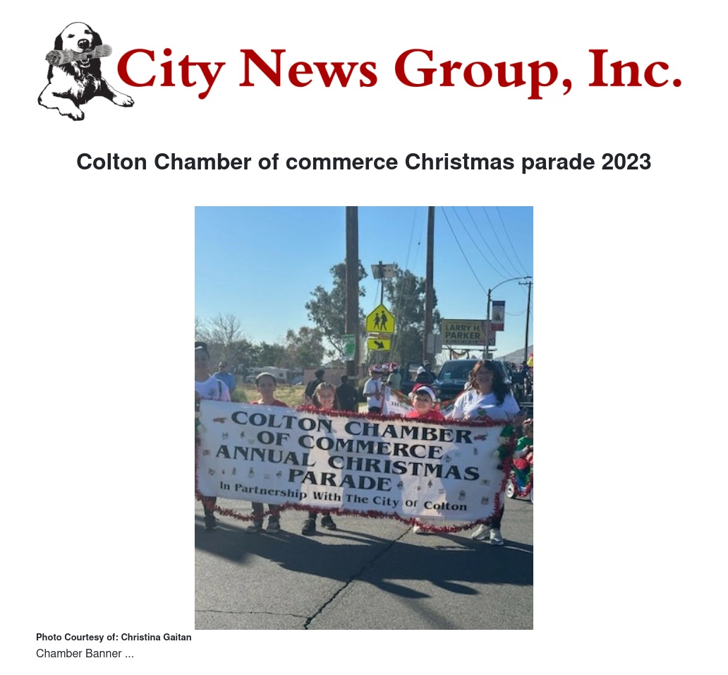 December 2 , 2023 The Colton Chamber of Commerce in partnership with the City of Colton hosted their 47th annual Christmas parade at 10 am down LA Cadena Drive staring on O street ending at D street . The Chamber of Commerce had forty two entries. Along with the entries every group had 10 to 30 people participating in the parade . This year their was more than past years . Their were more spectators in audience also . It was a fantastic parade huge success for The Chamber .