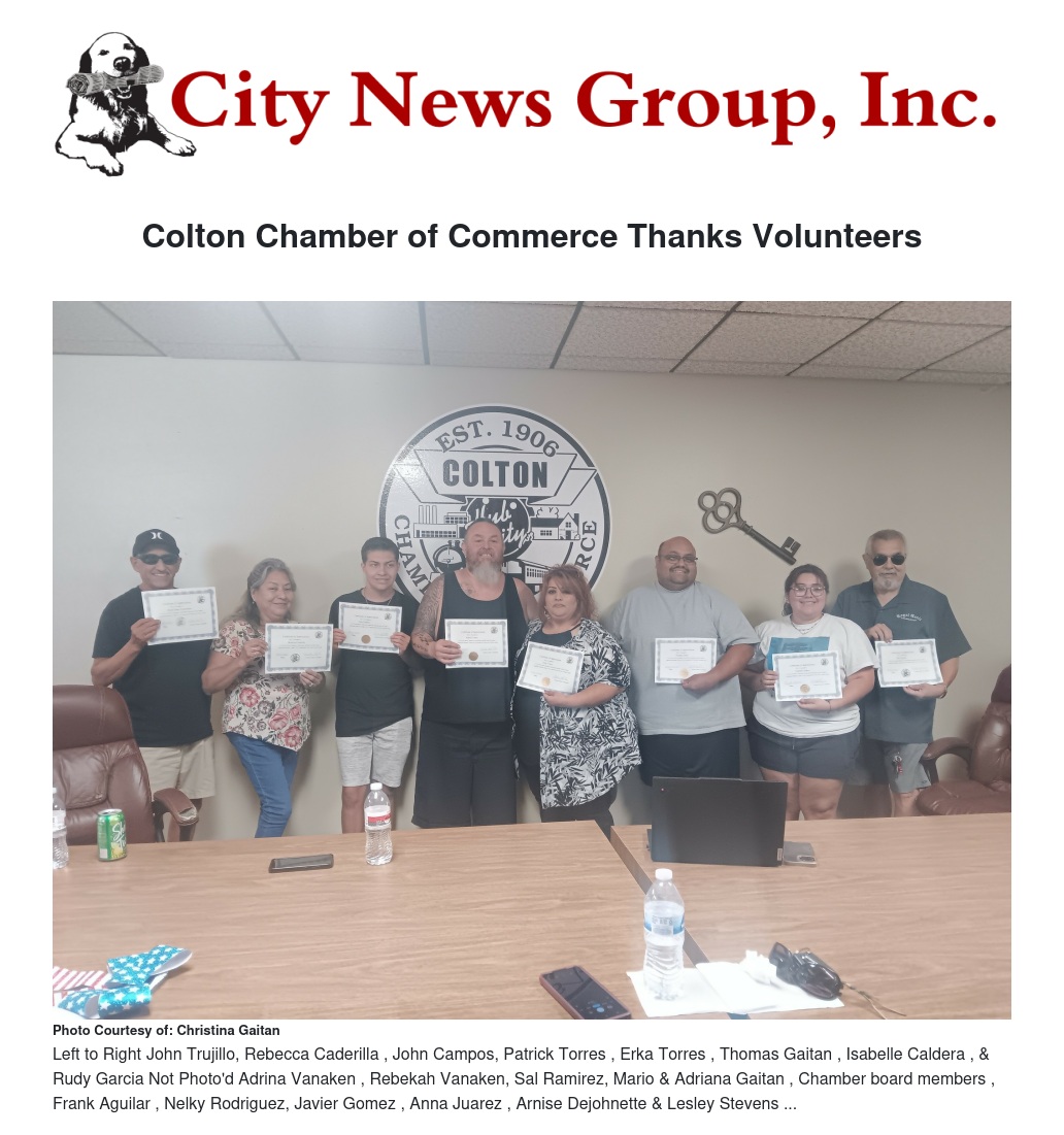 To thank these volunteers, the Colton Chamber hosts a luncheon and hands out Certificates of appreciation.