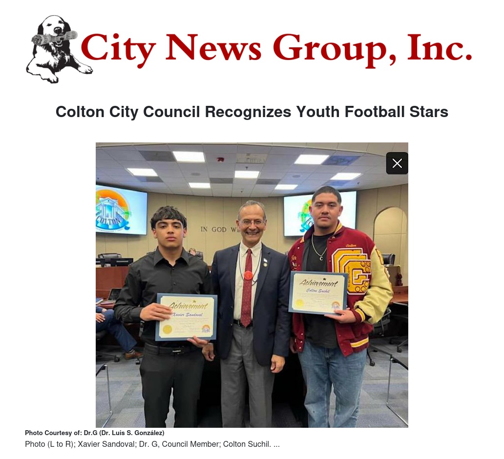 At the Council meeting, Colton and Xavier were recognized for this unique honor, as they represent their team, their school, and the City of Colton.