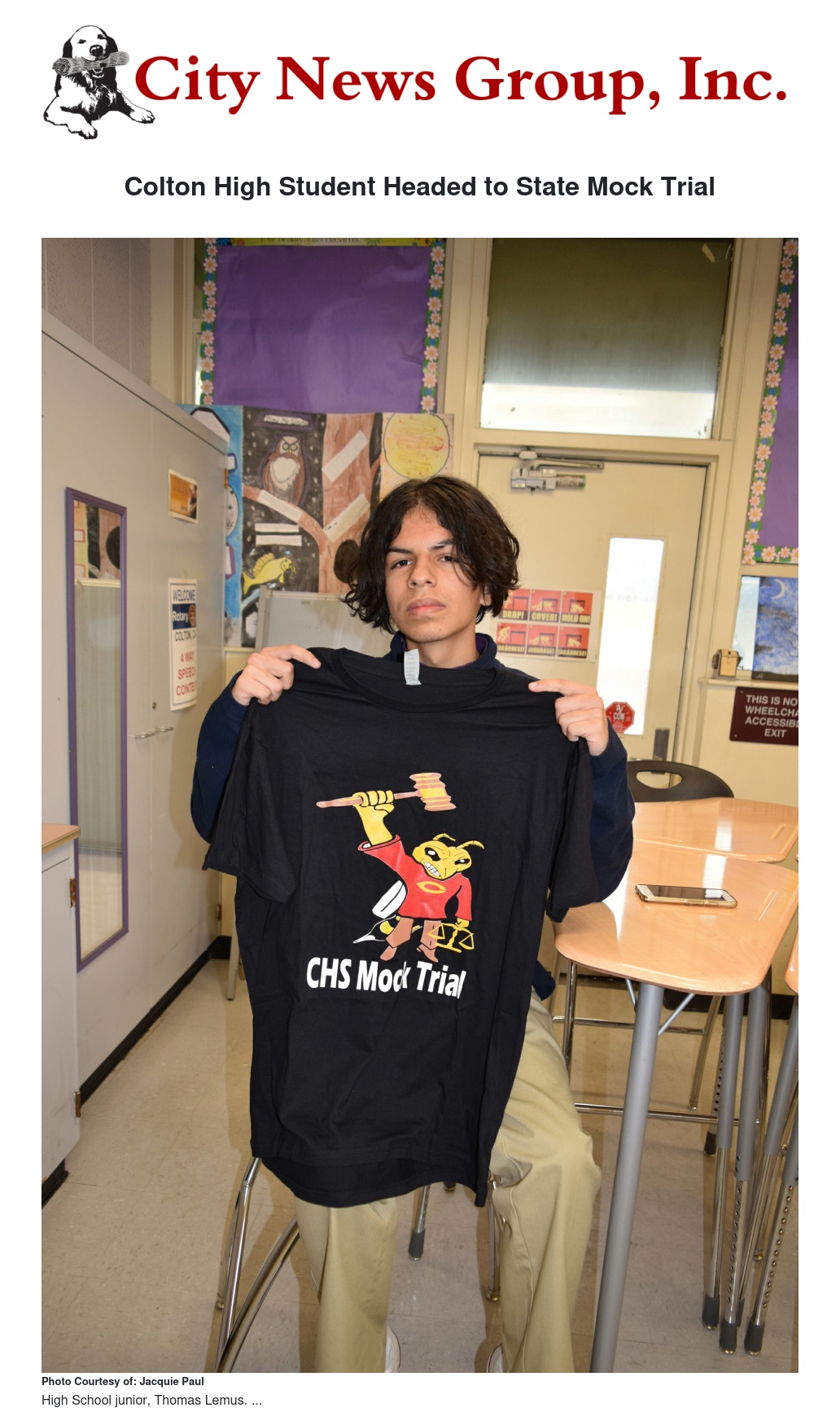 Thomas is the only courtroom artist from San Bernardino County headed to the state contest and is the first Colton High School artist to make it this far in the competition. A total of 17 artists competed for the chance to represent San Bernardino County at the state contest.